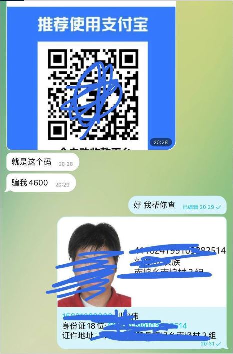 提供手机号或者支付宝收款码,即可正反查对方身份信息